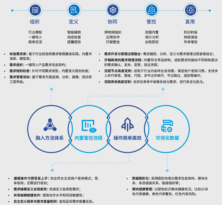 SysFamily.ReqDMS 基于金航工業(yè)軟件基礎(chǔ)平臺開發(fā),采用微服務(wù)、AI、云平臺等新一代信息技術(shù)架構(gòu) 體系,提供需求組織、定義、協(xié)同、管控、復(fù)用等功能,融合需求定義與管理通用業(yè)務(wù)場景及最佳實(shí)踐,真正實(shí)現(xiàn)開箱即用。產(chǎn)品符合安全保密標(biāo)準(zhǔn),支持國產(chǎn)化信創(chuàng)要求,所有技術(shù)均自主可控。適用于航空、航天、船舶、兵器等復(fù)雜裝備領(lǐng)域。