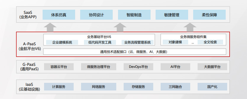 金航工業(yè)軟件基礎(chǔ)平臺 V6 針對傳統(tǒng)模式下工業(yè)軟件的發(fā)展痛點(diǎn),結(jié)合云計算的標(biāo)準(zhǔn)化、可擴(kuò)展、 分布式、高可用的特點(diǎn),提供具有行業(yè)特色的業(yè)務(wù)基礎(chǔ)云平臺架構(gòu),向下兼容主流云底座;中間適配 通用 PaaS 服務(wù),可快速對接大數(shù)據(jù)、AI 等云服務(wù);向上支持云原生開發(fā),能夠自動生成代碼框架,形 成既適配業(yè)務(wù)場景又符合云原生標(biāo)準(zhǔn)的多種場景應(yīng)用遷移上云解決方案。基于金航工業(yè)軟件基礎(chǔ)平臺 V6 統(tǒng)一的技術(shù)架構(gòu)和協(xié)同環(huán)境,可幫助企業(yè)形成業(yè)務(wù)中臺,實(shí)現(xiàn)不同應(yīng)用之間數(shù)據(jù)的深度融合。