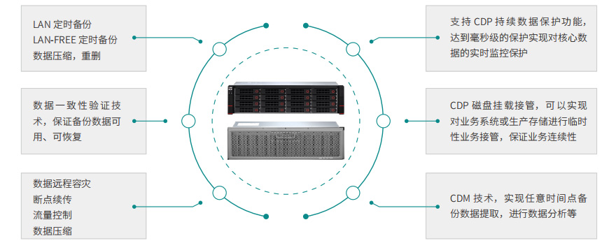 由磁盤和備份軟件組成,能夠支持基于 CDP、CDM、數(shù)據(jù)庫文件等的本地?cái)?shù)據(jù)備份和遠(yuǎn)程數(shù)據(jù)備份 / 恢復(fù), 以及遠(yuǎn)程災(zāi)難恢復(fù)演練等。